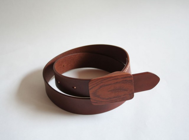 革工房beansとのコラボ作品、2011年9月製作の「木製バックルのベルト」です。